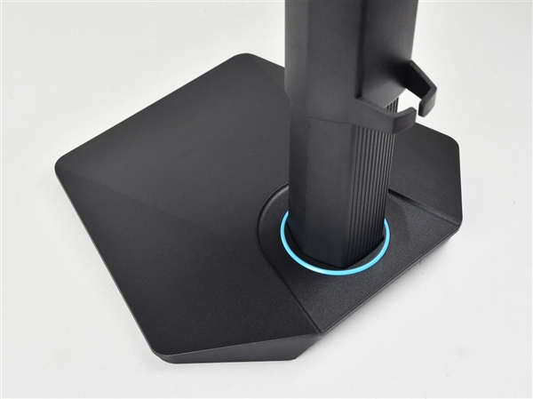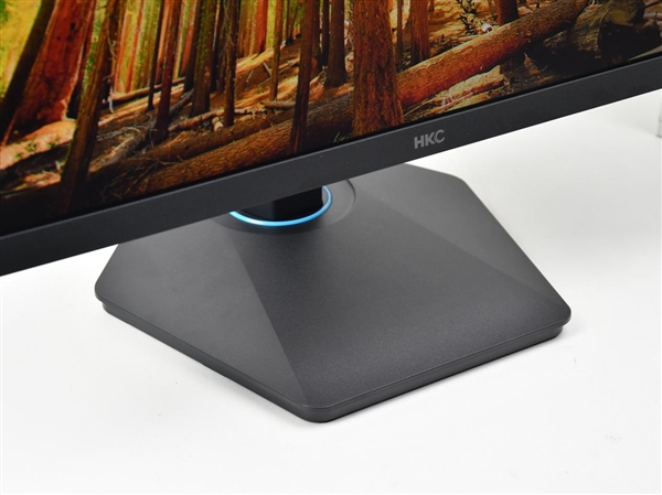 底座方面HKC G25H1這次依舊采用了我們熟悉的六邊形底座,不僅小巧耐看,而且也要更符合FPS玩家的日常使用習慣,底座與支架連接部分采用藍色圓環作為點綴,極具電競科技感。