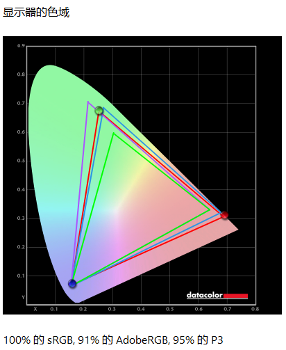 首先是色域測試,根據SpyderXElite軟件的測試結果顯示,HKC G25H1顯示器sRGB色域的覆蓋度為100%,AdobeRGB色域的覆蓋度為91%,P3色域的覆蓋度為95%,表現完全符合官方宣傳水平。