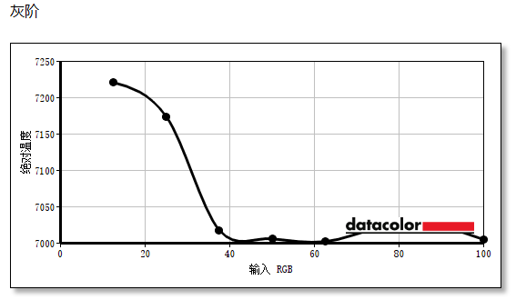 灰階方面,顯示器在40%-100%的亮度下表現比較穩定,整體色溫維持在7000K以上,相比標准色溫來說略微偏冷。