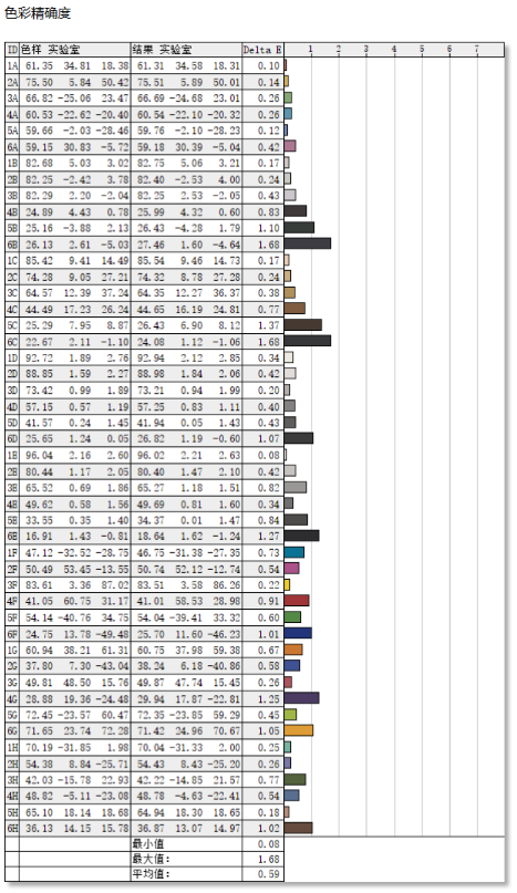 在色彩准確度的測試中,HKC G25H1顯示器結果為平均ΔE值為0.59,最大ΔE為1.68。一般來說平均ΔE<2,人眼就基本上分辨不出色彩的差異,HKC G25H1甚至做到了平均ΔE值≤1,最大值也不超過2,可以說即使面對部分專業顯示器也毫不遜色。