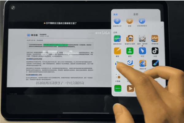 在橫屏使用的狀態下,只要雙指下滑就能觸發分屏功能。我上學時候就很喜歡左邊放 “ B 站大學 ” ,右邊放筆記軟件。