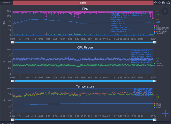在游戲助手中打開 OPPO 自己搞的超幀超畫功能之後,原神須彌城跑圖平均幀率能來到 118.9 ,整體來看也是穩如老狗。