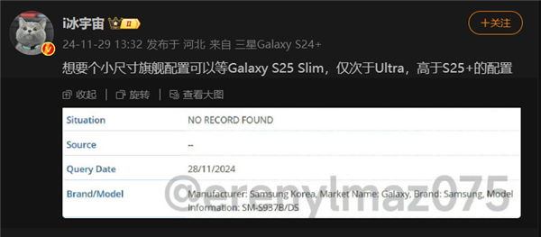 據知名數碼博主@i冰宇宙透露,明年的三星手機將推出一款小屏旗艦——S25 Slim,定位在S25+之上,僅次於Ultra版本。