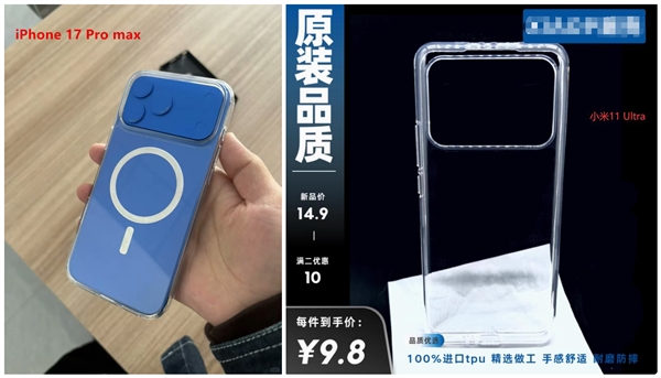 有博主在社交平臺上曬出了iPhone 17 Pro Max的保護殼,其攝像頭開孔跟小米11 Ultra近乎一致,因為兩款機型都是橫向大矩陣相機DECO設計,擁有極高的辨識度。