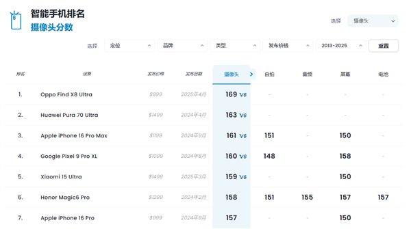 根據DXOMARK最新測試結果顯示,OPPO Find X8 Ultra以169分名列DXOMARK影像排行榜第一,且獲得DXOMARK金標。