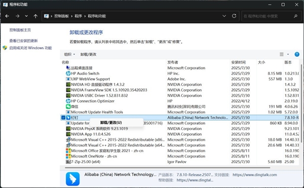 然後再左下角程序一些,在它的下面就是卸載程序,點擊就能夠進入卸載程序界面。這裡只有安裝的傳統應用,並沒有UWP應用,所以相對更好找一些。找到不需要軟件,在軟件名上右擊,在彈出來的對話框中選擇卸載即可。