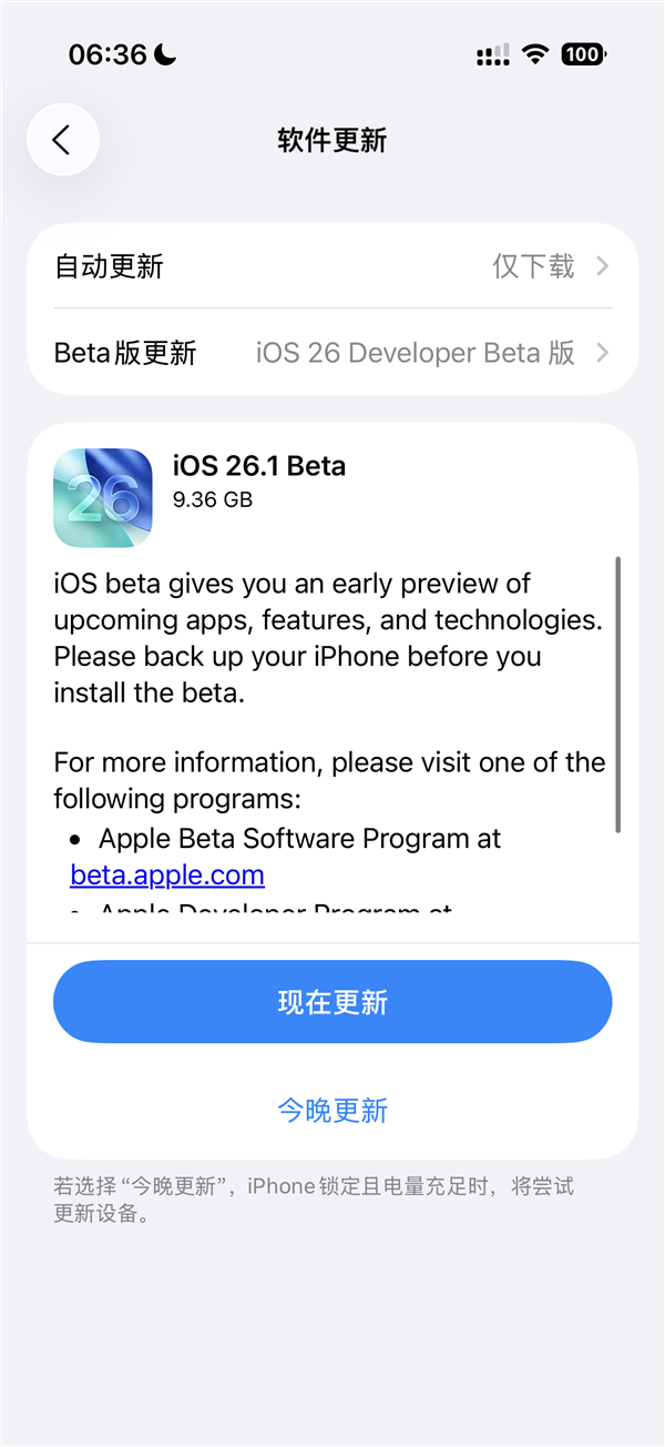 今日,苹果發布iOS 26.1開發者預覽版Beta更新,內部版本號23B5044l。