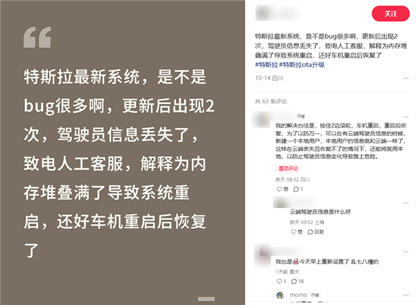 昨日,不少特斯拉車主在小紅書等社交平臺反映稱,平日自己設置好東西都變了,需要重新手動調整,有車主形容為“我的車突然不是我的車了!”